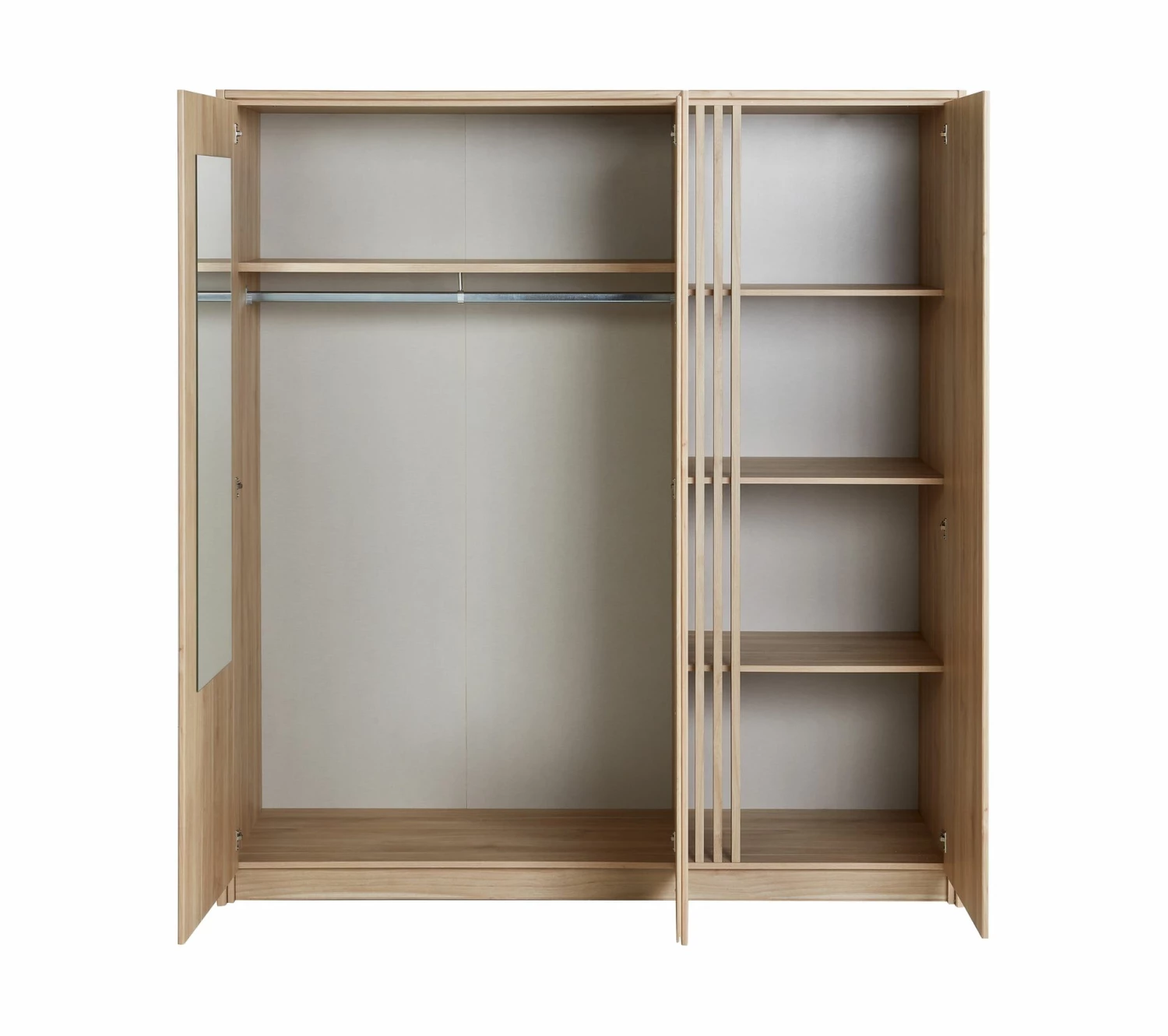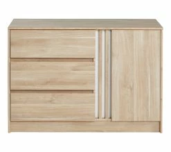 Un meuble pratiqueTransformez le décor de votre chambre avec cette armoire ESCALE, dotée de grands volumes de rangement. Bien agencée, elle offre un espace penderie avec étagère, accompagné d’une partie lingère munie de 3 tablettes. D’un encombrement minimum, cette armoire de dimensions L. 185 x H. 202,8 x P. 52,3 cm se glisse simplement contre un mur. Ses 3 portes battantes facilitent le rangement des articles volumineux. Fonctionnelle, cette armoire révèle un vrai sens pratique, avec son miroir dissimulé dans la porte de gauche. Côté entretien, elle demande juste un coup de chiffon doux pour éliminer la poussière.Un design contemporainPratique, cette armoire au coloris chêne se prête à tous les types d’utilisation. Dans une chambre, associez-la à du mobilier en bois, pour un bel effet naturel. La penderie est parfaite pour le rangement des articles sur cintres. L’étagère du haut peut accueillir les sacs, corbeilles de rangement, couvertures, coussins…
