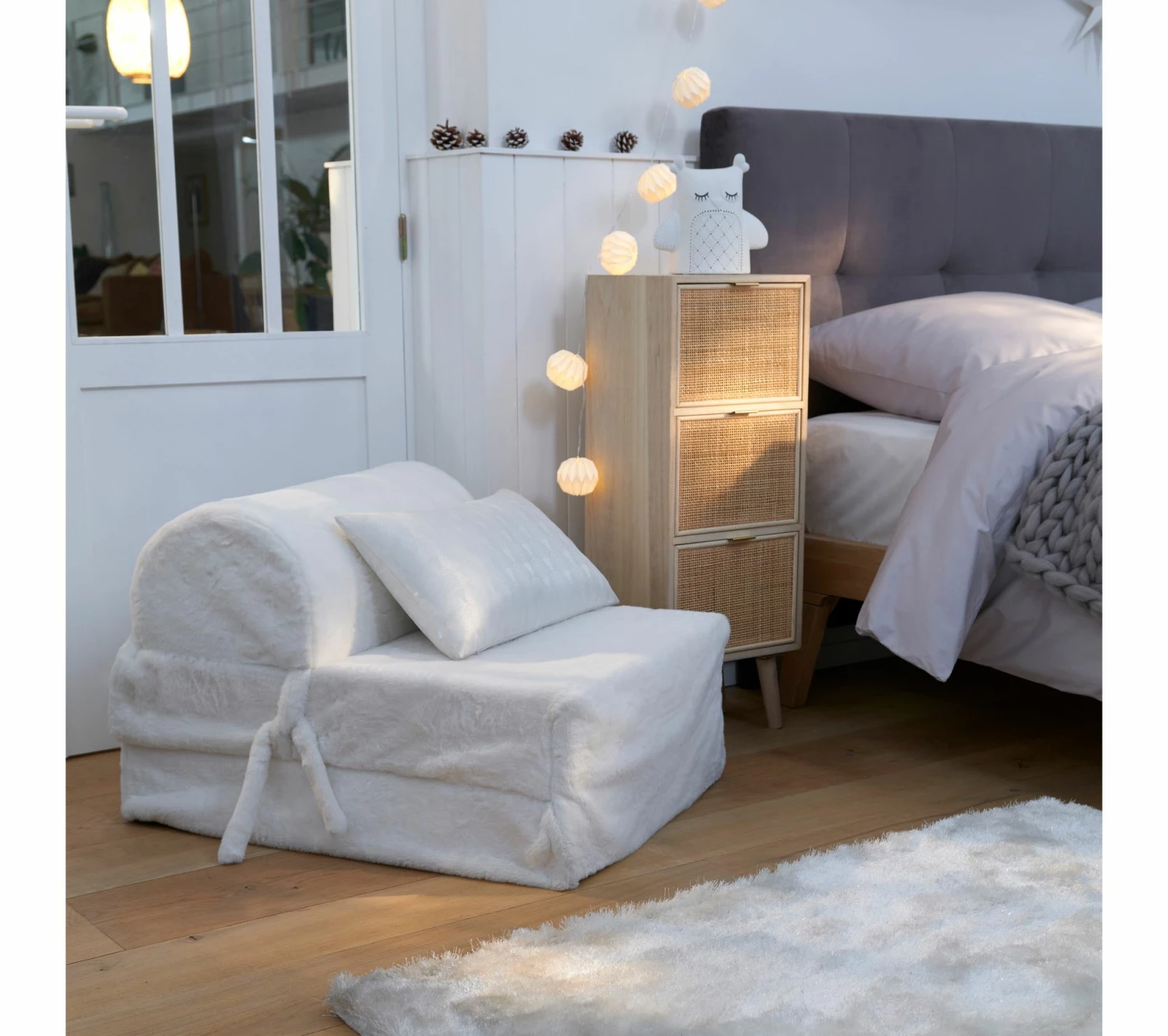 Aussi solide que pratique et douillette, la chauffeuse JACOBa tout pour elle. De fabrication française, elle est revêtue d’une housse 100 % polyester, un tissu synthétique extrêmement résistant. Le confort de cette chauffeusetient à sa texture en fausse fourrure et à son généreux garnissage en mousse polyéther. Fonctionnelle, cette chauffeusede 180 cm de longueur dépliée ne mesure plus que 75 cmune fois qu’elle est pliée. Elle constitue un siège, mais aussi un lit d’appoint sur mesure, qui trouve volontiers sa place dans une chambre ou dans un salon.