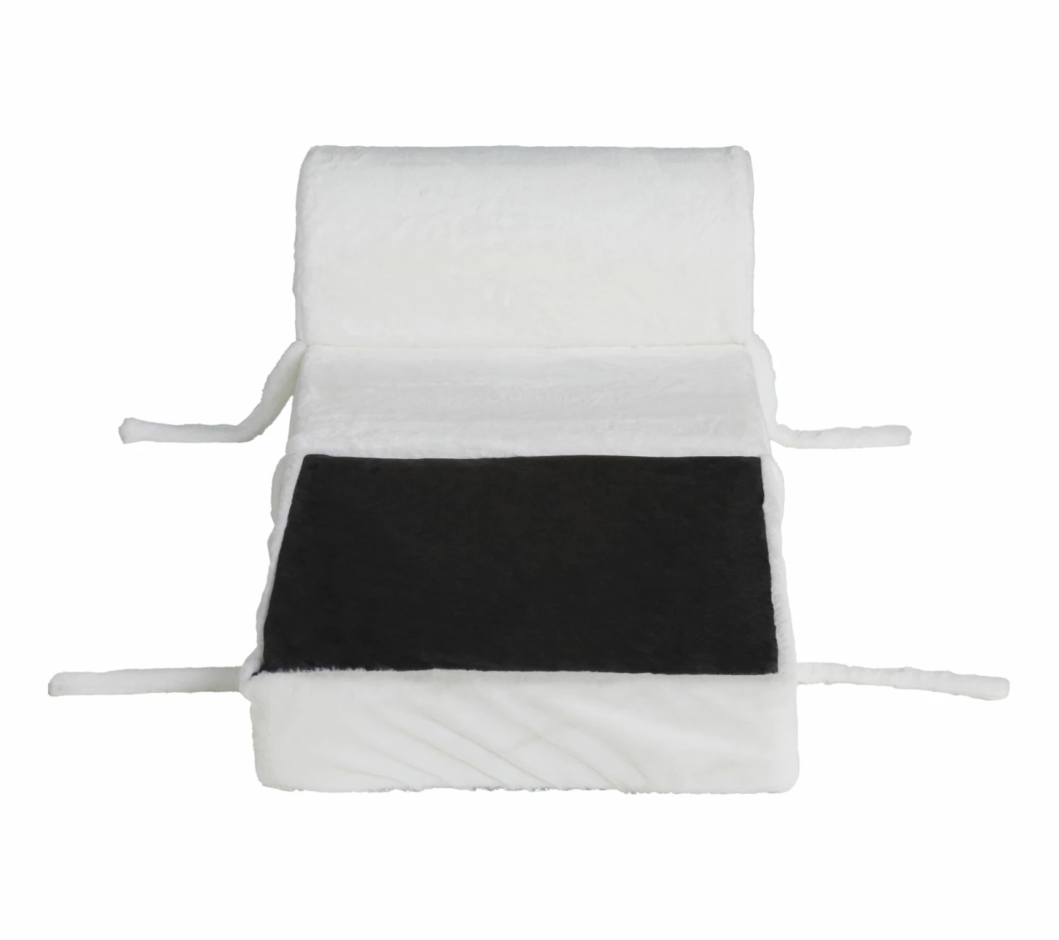 - Housse 100% polyester fausse fourrure, parties non visibles en non tissé 100% polypropylène. Attaches latérales tissus polyester.