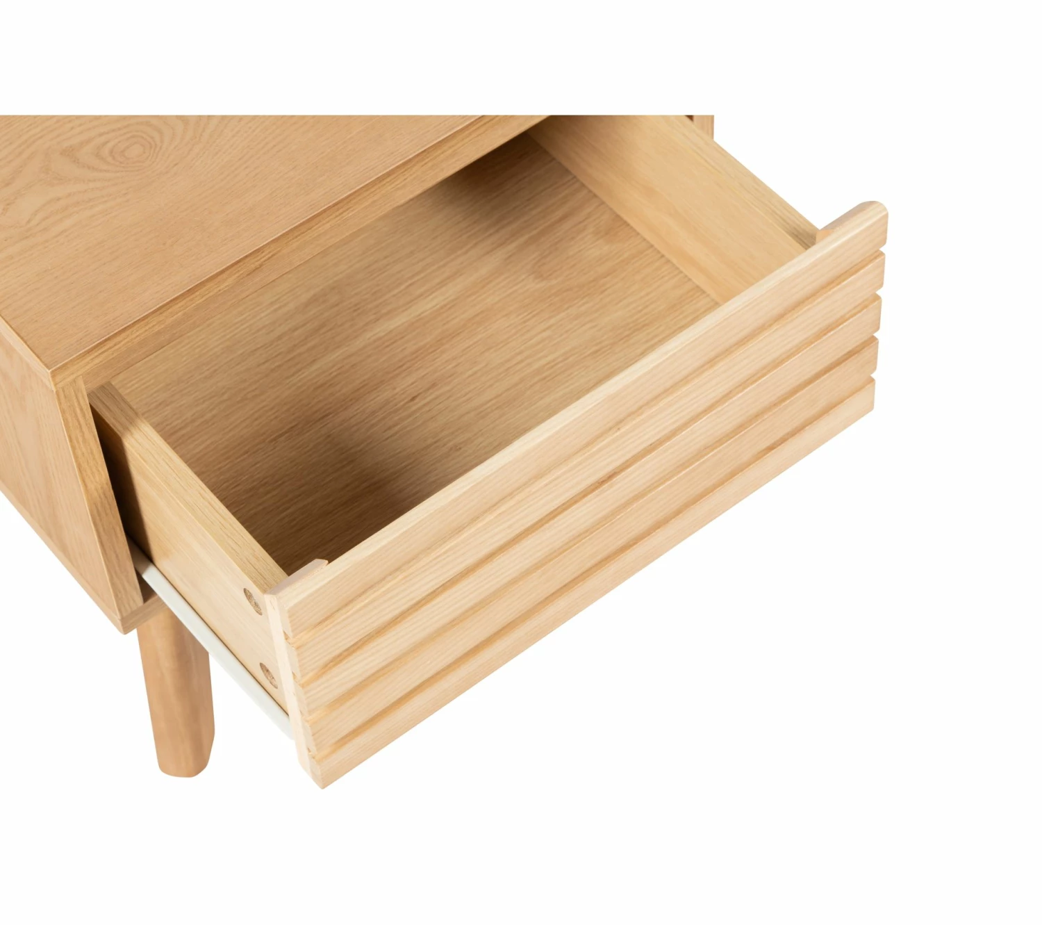 - Facade de tiroir en lattes de frêne massif.