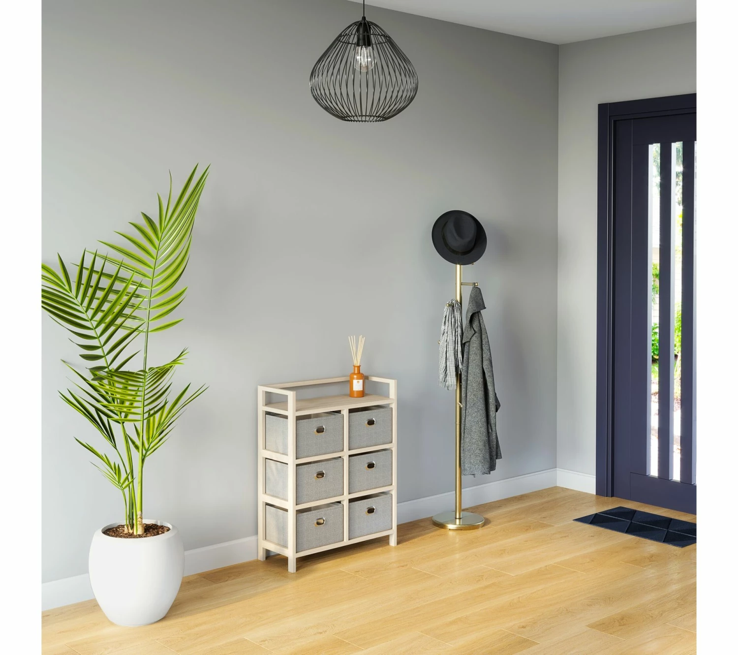 La commode LANA se distingue par sa structure en bois qui abrite 6 tiroirs en tissu à l’effet lin. Son alliance de couleurs claires et neutres s’accorde sans aucune difficulté à votre décoration d’intérieur. Cette jolie commode 6 tiroirs accueille volontiers des sous-vêtements, des produits de beauté ou des jouets.