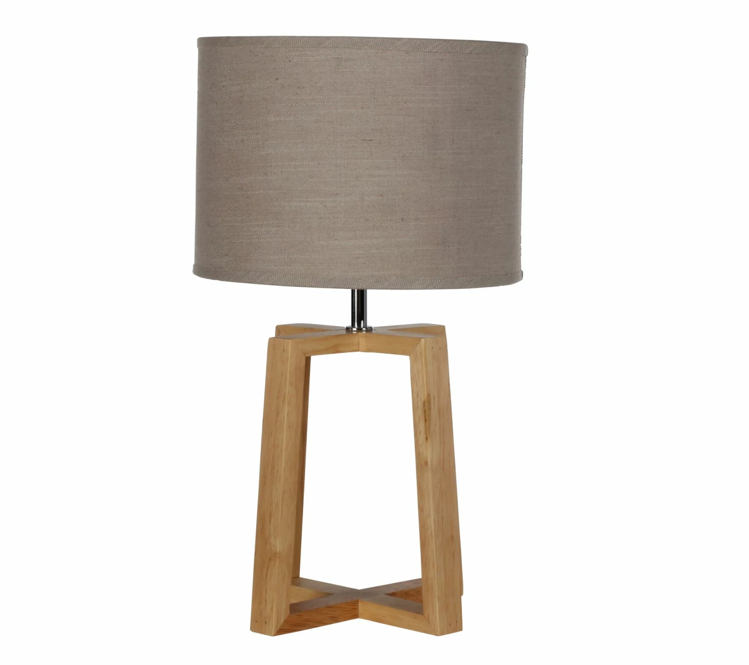 Cette lampe taupe se révèle particulièrement stable grâce à son pied en forme de croix. Facile à installer, elle se branche directement sur une prise électrique. Le type d’ampoule compatible est le modèle E14 (non fourni). La puissance ne doit pas dépasser les 40 watts. Cette lampe d’une hauteur de 44,5 cm possède un diamètre de 25 cm. Vous pouvez la poser sur une table d’appoint dans l’entrée, sur un buffet ou sur un meuble TV. Son prix avantageux permet d’en acheter deux pour les utiliser comme lampes de chevet dans la chambre. La lumière est tamisée et crée une ambiance cosy.