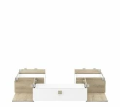Ce lit blanc et imitation chêne apportera une touche de luminosité dans votre chambre à coucher avec ses parties blanches. Moderne, il s’intégrera harmonieusement dans un intérieur contemporain. Fabriqué en Europe, il possède une structure robuste en panneaux de particules : un gage de longévité.