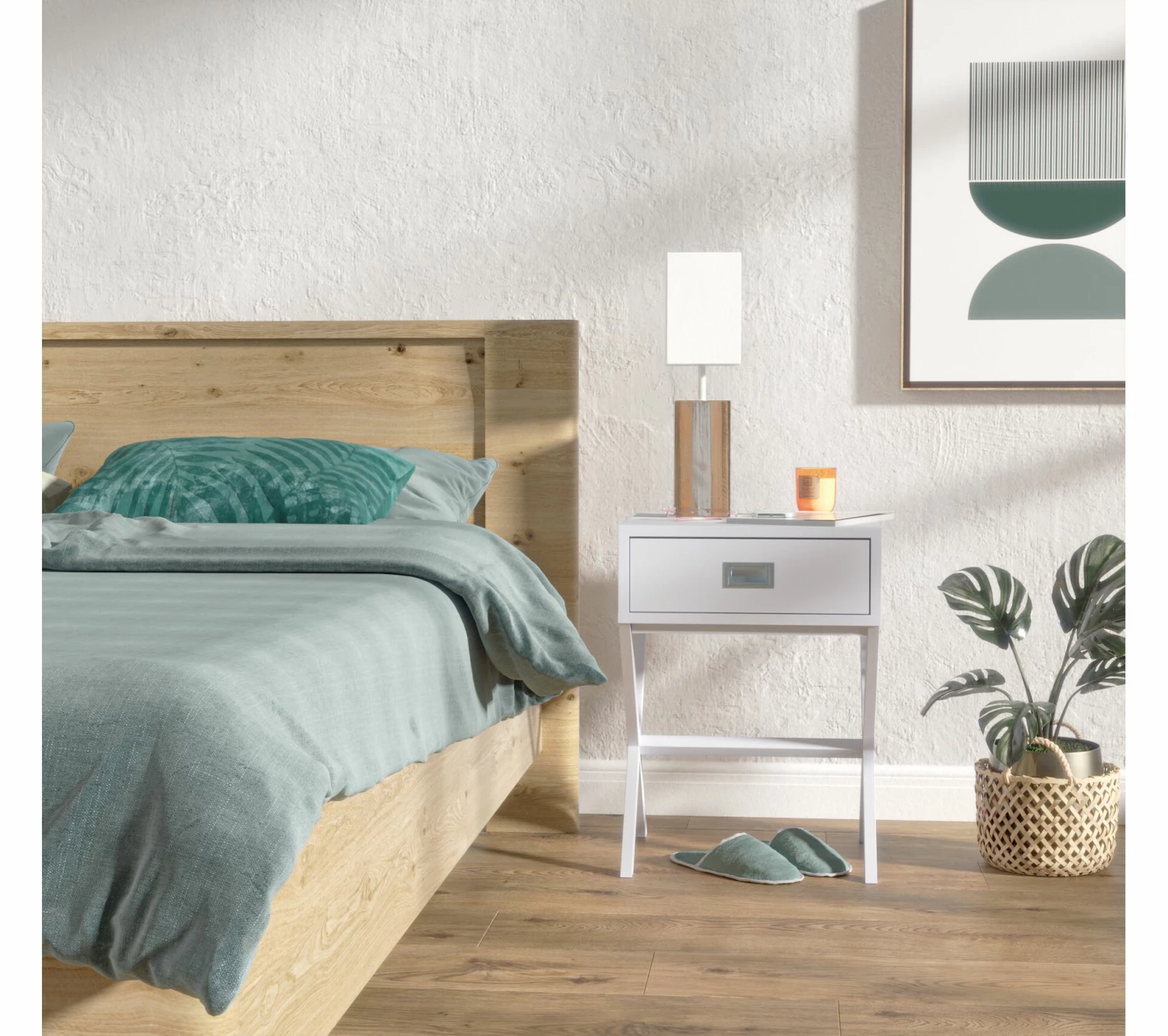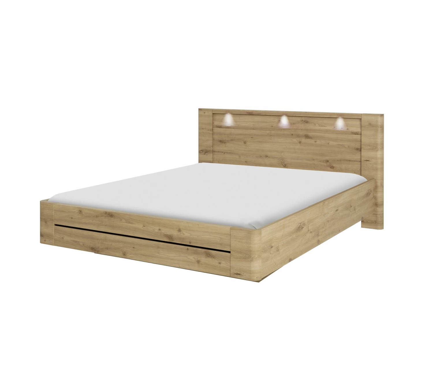 Prévu pour être coordonné avec les différents meubles de la collection CONFIDENCE, ce lit imitation chêne constitue l’élément phare d’une décoration harmonieuse mettant en valeur les effets boisés et naturels. Son design épuré aux lignes légèrement arrondies apporte une note chaleureuse dans une chambre au style nordique ou chalet.