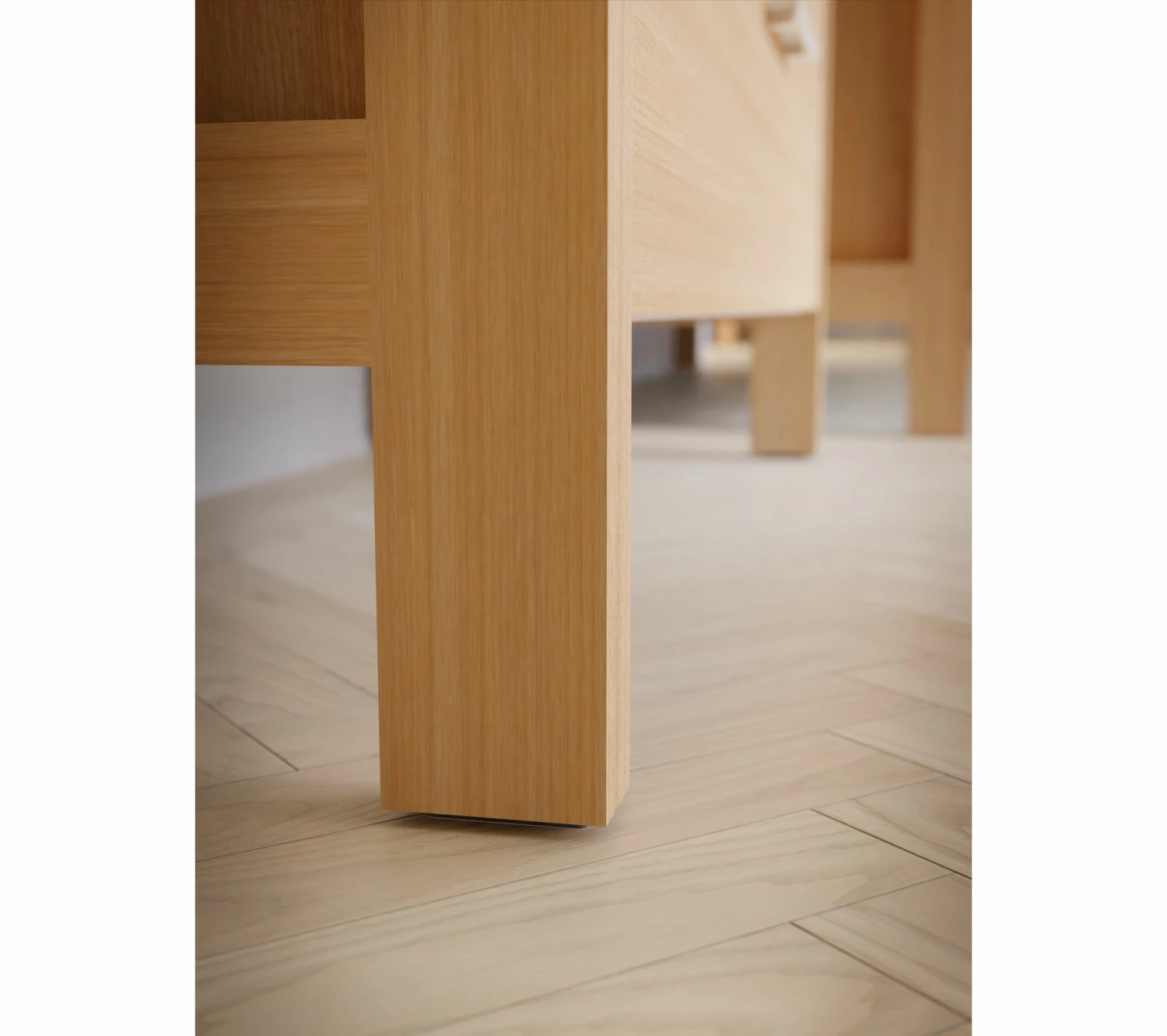 - Structure en panneaux de particules revêtus de papier décor blanc et imitation chêne.